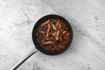in süsser Soja-Chili-Sauce mit Zucchetti und Sesam