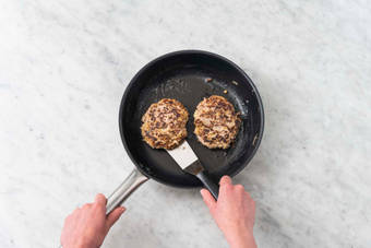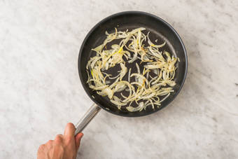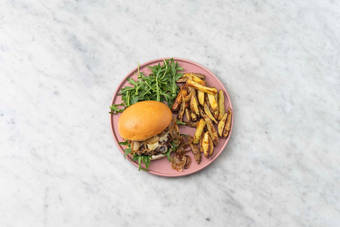 med karamelliserad lök och klyftpotatis