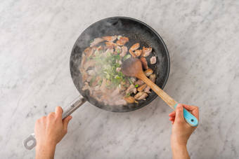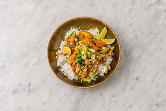 med vitlöksris och jordnötter