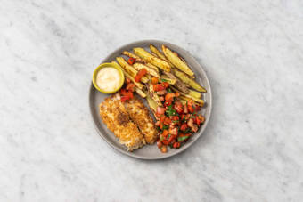 med pommes, paprikasalsa och aioli