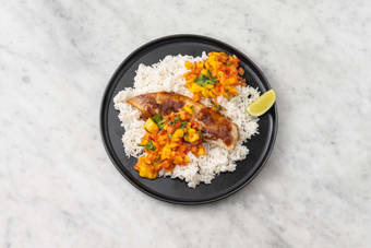 with Coconut Rice and Mango Salsa
