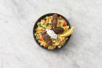 med citrondressing och couscoustabbouleh