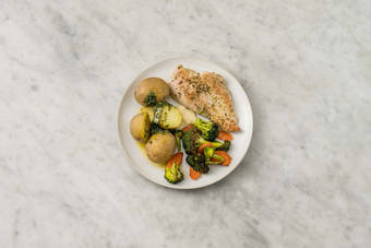 med basilikapotatis och broccoli
